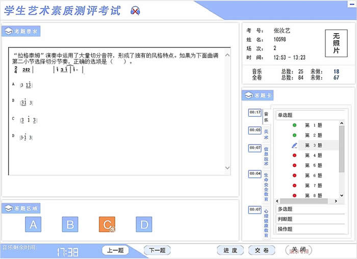 在該背景下,青島正日軟件根據(jù)全國藝術(shù)學(xué)科的考試需求研制開發(fā)了“正日藝術(shù)學(xué)科考試系統(tǒng)”。該系統(tǒng)是一款集命題、報名、考場編排、在線監(jiān)考、考生作答、自動判分和成績統(tǒng)計分析于一體的機考平臺,用戶可根據(jù)音樂、美術(shù)等課標(biāo)要求,用于組織多學(xué)科、大規(guī)模的高利害上機考試,系統(tǒng)除支持客觀題外,還支持視唱、節(jié)奏、表演、構(gòu)圖、透視等十多種操作題的自動判分。