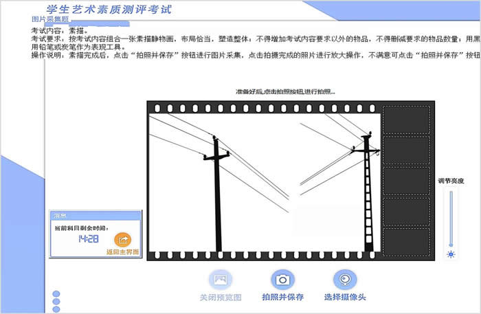 在進入藝術(shù)學(xué)科考試系統(tǒng)之前,需要對硬件進行圖片采集、色彩、音視頻采集和播放、節(jié)奏敲擊等功能的檢測,以確保考試的順利進行。