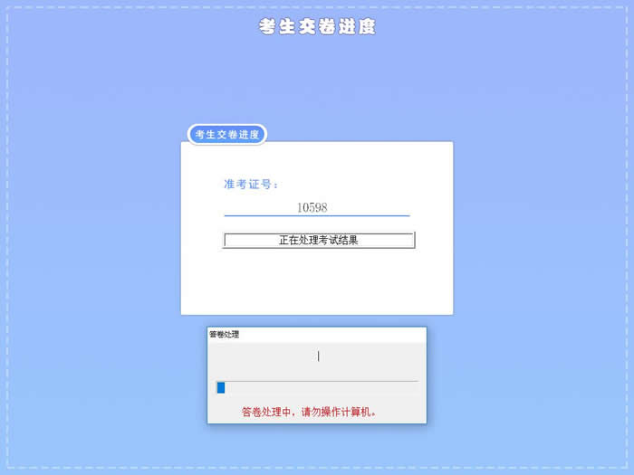 客戶端支持自動閱卷,當(dāng)考生點擊“交卷”按鈕,就觸發(fā)了客戶端閱卷、收卷過程??蛻舳藭詣訉忌槿≡嚲淼拿康涝囶}進行自動閱卷,對于部分首次閱卷為0分的試題還會進行二次閱卷,確保閱卷的準(zhǔn)確性,提高考試公平性。