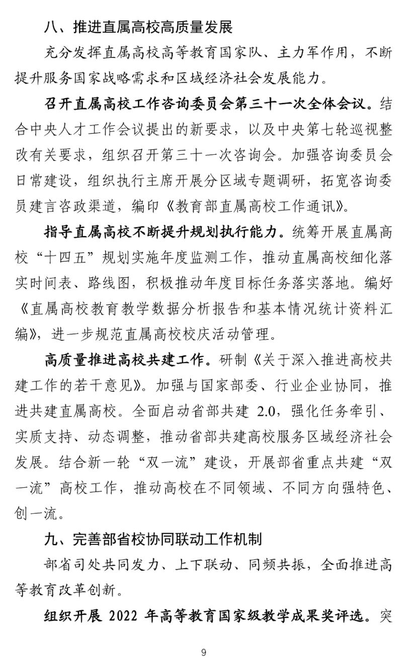 提升數(shù)字化治理能力。印發(fā)《關(guān)于加強(qiáng)普通高等學(xué)校在線開放課程教學(xué)管理的若干意見》,推出高等教育數(shù)字化服務(wù)管理系統(tǒng)平臺(tái)、高等教育在線課程服務(wù)與管理平臺(tái)、圖書文獻(xiàn)保障數(shù)據(jù)管理服務(wù)平臺(tái)。建設(shè)全國(guó)普通高等教育教學(xué)資源網(wǎng)、全國(guó)普通高等教育教材網(wǎng)。構(gòu)建部、省、校聯(lián)動(dòng),人才培養(yǎng)要素涵蓋、流程貫通的“教育腦”決策系統(tǒng)。推出一批教學(xué)數(shù)字化改革先進(jìn)典型。