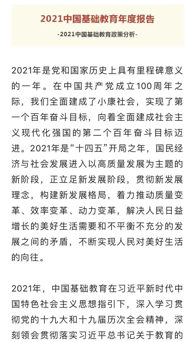 中國教育報刊社發(fā)布的《2021中國基礎(chǔ)教育年度報告》聚焦高質(zhì)量發(fā)展主題,關(guān)注一年來基礎(chǔ)教育的重大決策部署進(jìn)展和成果、重要研究前沿和熱點、重要實踐探索經(jīng)驗和案例。具體內(nèi)容快跟著信息技術(shù)考試系統(tǒng)的小編來看看吧~