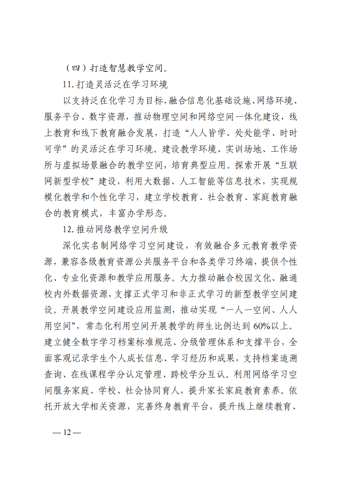 (四)打造智慧教學(xué)空間:1、打造靈活泛在學(xué)習(xí)環(huán)境;2、推動網(wǎng)絡(luò)教學(xué)空間升級;3、逐步普及新型學(xué)習(xí)終端
