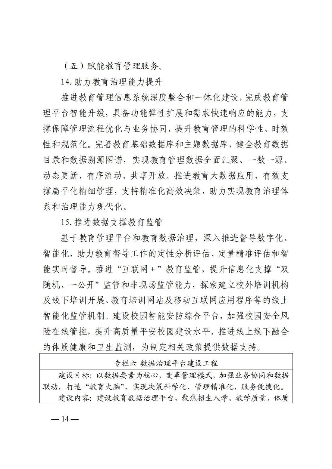 (五)賦能教育管理服務(wù):1、助力教育治理能力提升;2、推進數(shù)據(jù)支撐教育監(jiān)管;3、完善網(wǎng)上教育政務(wù)服務(wù)
