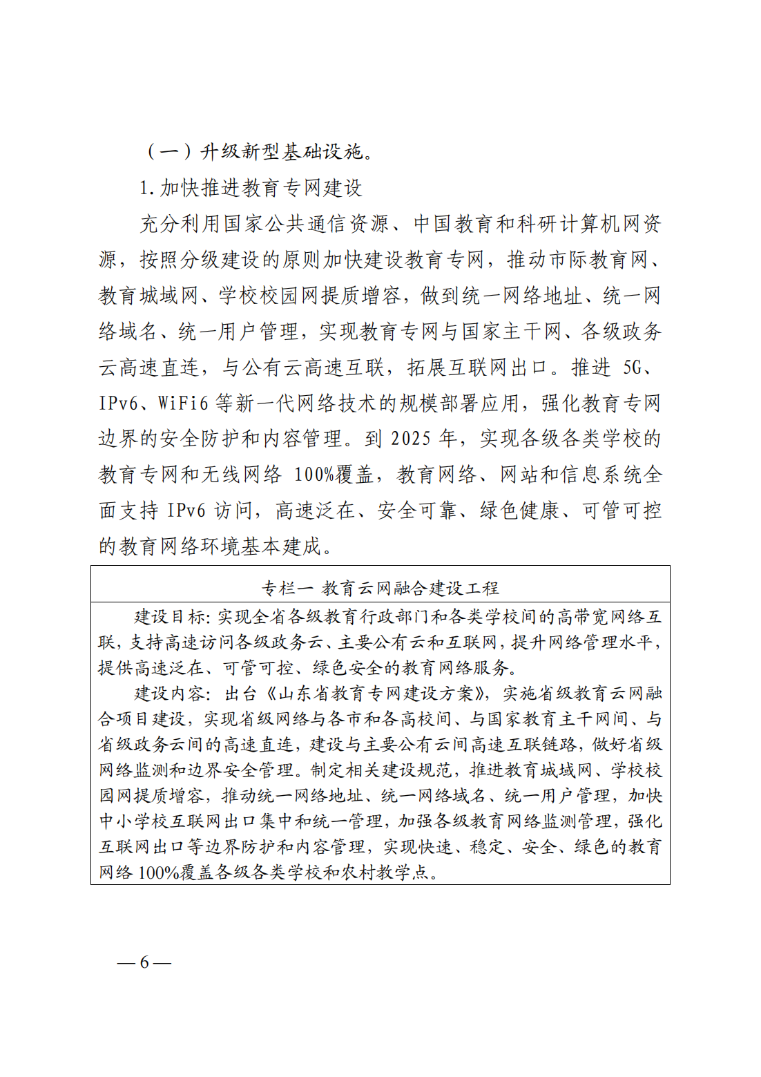 (一)升級新型基礎(chǔ)設(shè)施:1、加快推進教育專網(wǎng)建設(shè);2、升級智慧校園基礎(chǔ)設(shè)施;3、完善教育服務(wù)平臺體系。