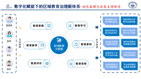 4、數(shù)字化要為實時監(jiān)測、預警和優(yōu)化教育教學賦能,要為建立新治理體系賦能。