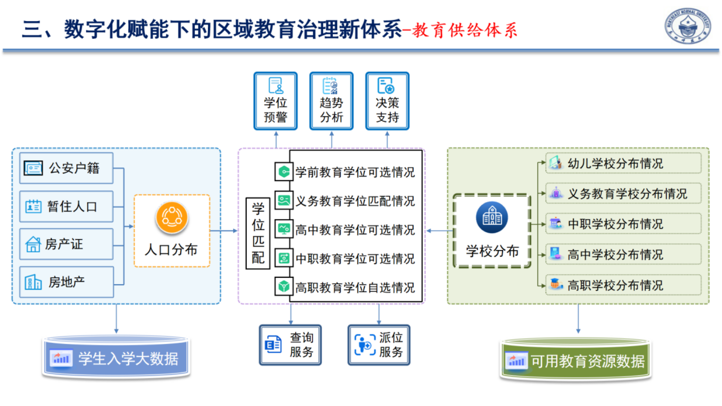 從宏觀上,改變教育服務(wù)供給需要建立一個支撐體系,需要站在區(qū)域角度建立完整的教育評價體系、監(jiān)測體系,形成新的教育格局。站在學校層面,學校的治理體系要通過大數(shù)據(jù)、互聯(lián)網(wǎng)、人工智能分段、分層去建立改變教育供給的格局。