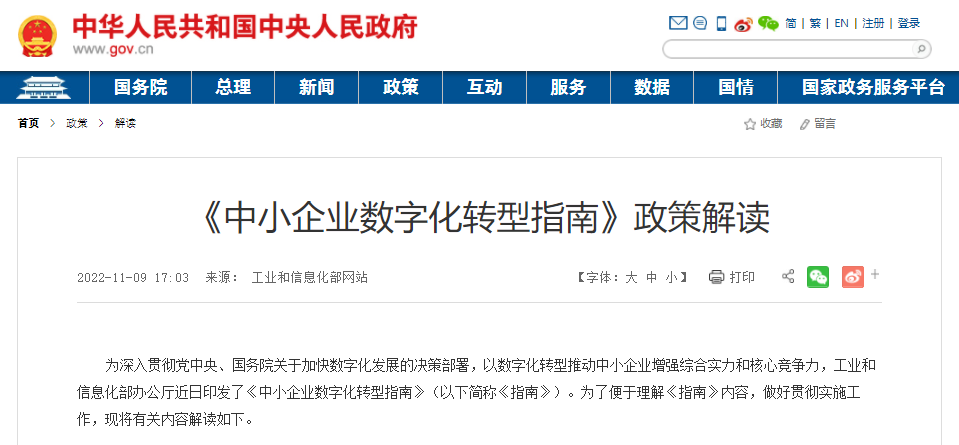 《指南》旨在貫徹落實(shí)黨中央國(guó)務(wù)院決策部署,加強(qiáng)政策協(xié)同、強(qiáng)化科學(xué)指引、深化轉(zhuǎn)型認(rèn)知、凝聚工作合力,以中小企業(yè)數(shù)字化轉(zhuǎn)型促進(jìn)實(shí)體經(jīng)濟(jì)高質(zhì)量發(fā)展。一是順應(yīng)經(jīng)濟(jì)社會(huì)數(shù)字化轉(zhuǎn)型大趨勢(shì)。當(dāng)前,世界經(jīng)濟(jì)數(shù)字化轉(zhuǎn)型已是大勢(shì)所趨。中小企業(yè)量大面廣,是數(shù)字化轉(zhuǎn)型的重點(diǎn)和難點(diǎn)。多措并舉推動(dòng)中小企業(yè)科學(xué)高效開(kāi)展數(shù)字化轉(zhuǎn)型,對(duì)于經(jīng)濟(jì)高質(zhì)量發(fā)展至關(guān)重要。二是助推中小企業(yè)專精特新發(fā)展。深化數(shù)字技術(shù)在研產(chǎn)供銷服用等各環(huán)節(jié)的應(yīng)用,有利于發(fā)揮賦能賦值賦智作用,加速中小企業(yè)技術(shù)創(chuàng)新、產(chǎn)品升級(jí)和模式變革,實(shí)現(xiàn)專精特新發(fā)展。三是強(qiáng)化中小企業(yè)數(shù)字化轉(zhuǎn)型路徑指引。數(shù)字化轉(zhuǎn)型是系統(tǒng)性工程,點(diǎn)多、線長(zhǎng)、面廣,具有很強(qiáng)的綜合性、交叉性和復(fù)雜度?!吨改稀分荚趲椭D(zhuǎn)型需求方、供給方和地方各級(jí)主管部門明確定位和路徑,增強(qiáng)轉(zhuǎn)型合力。