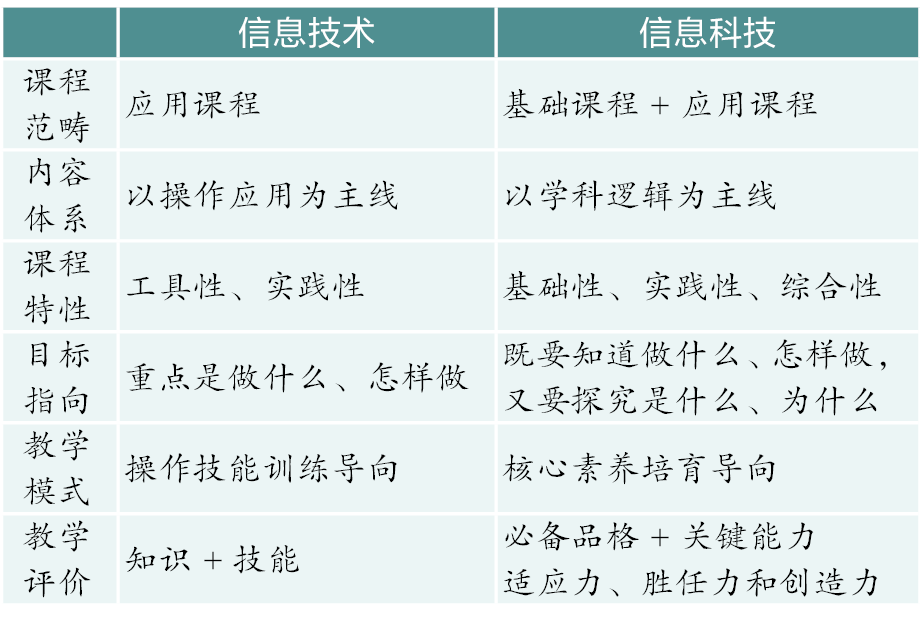 表1?信息技術(shù)與信息科技課程的異同