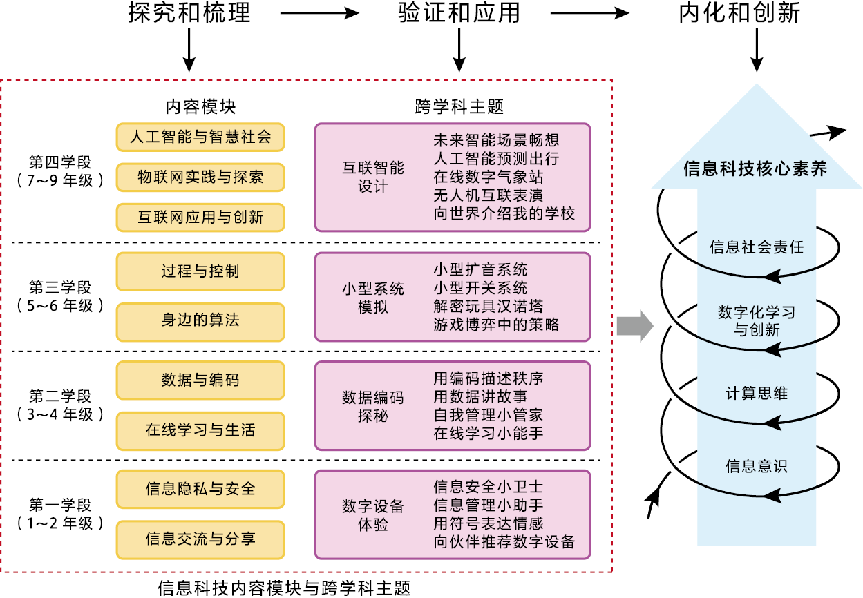 課程標(biāo)準(zhǔn)明確了課程的名稱、課時設(shè)置、內(nèi)容結(jié)構(gòu)和學(xué)業(yè)質(zhì)量標(biāo)準(zhǔn),將信息科技落實(shí)為全國統(tǒng)一開設(shè)的獨(dú)立課程,更新了國家層面對課程整體方案的頂層設(shè)計。