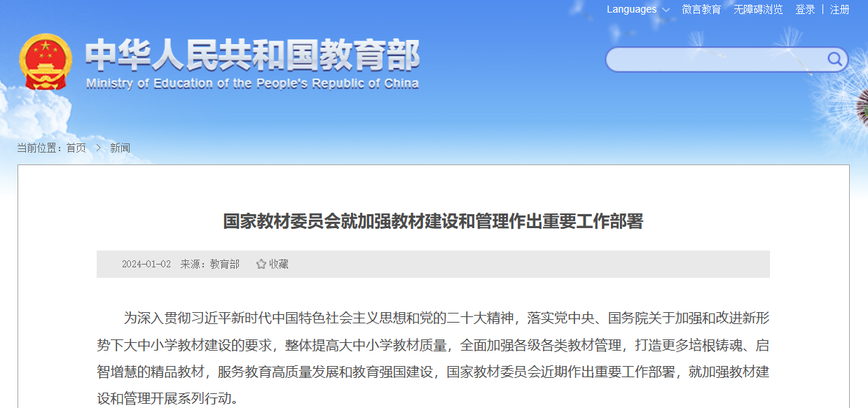為深入貫徹習(xí)近平新時(shí)代中國特色社會(huì)主義思想和黨的二十大精神,落實(shí)黨中央、國務(wù)院關(guān)于加強(qiáng)和改進(jìn)新形勢下大中小學(xué)教材建設(shè)的要求,整體提高大中小學(xué)教材質(zhì)量,全面加強(qiáng)各級(jí)各類教材管理,打造更多培根鑄魂、啟智增慧的精品教材,服務(wù)教育高質(zhì)量發(fā)展和教育強(qiáng)國建設(shè),國家教材委員會(huì)近期作出重要工作部署,就加強(qiáng)教材建設(shè)和管理開展系列行動(dòng)。